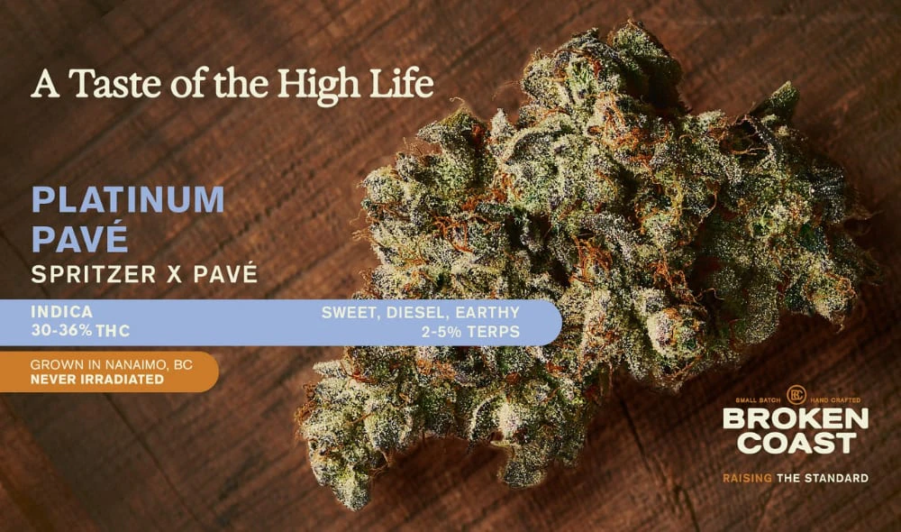 Platinum Pave is a visual masterpiece and is the embodiment of an extraordinary indica. Pheno hunted from more than 500 seeds from Compound Genetics, this Spritzer x Pave cross is high in THC. The vibrantly hued deep green and royal purple buds are dripping with trichomes with sweet diesel and earthy aromas. We use slow cold curing to optimally preserve trichomes, enhancing Platinum Pave's unique terpene profile and flavour. Grown in small batches, strain specific rooms, hang dried, carefully hand trimmed, slowly cold cured, never irradiated, inspected for purity and then carefully hand packaged.