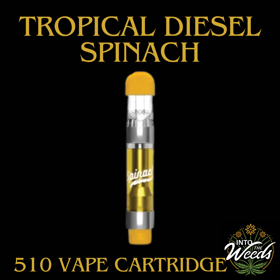SPINACH FEELZ™ Tropical Diesel CBG vape — a new take on the popular SPINACH™ Diesel, boosted with CBG. Features sweet tangerine, citrusy flavour notes and extra tropical goodness. Feelz. The Way You Want. 100 mg/g CBG