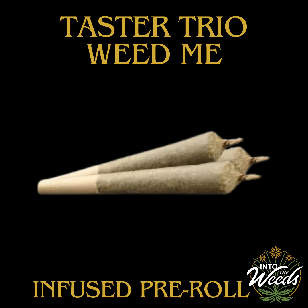 Taster Trio is a high-potency combo pack of infused pre-rolls with bold flavours. This lineup includes Dragon Fruit (non-kief coated), Blue Bubbles (kief coated), and Iced Watermelon (kief coated). Each pre-roll is made with milled flower, infused with potent distillate, and rolled in lightweight paper cones complete with a paper filter.
