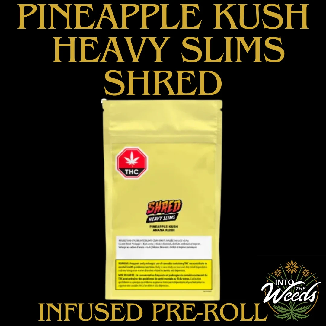 SHRED Pineapple Kush Heavy Slims deliver 5 x 0.4g infused tube-style blunts packed with up to 43% THC. These sleek tubes bring sweet pineapple aromas up front, with kushy undertones and a unique toasted flavour from the tea leaf blunt paper. Infused with diamonds, disty and terps, each blunt is rolled for a smooth, satisfying burn. Perfect for those who enjoy bold, fruity flavours with a potent kick, these blunts are anything but ordinary. Get ready to experience the fusion of sweet and kushy, all in one heavy hitter.