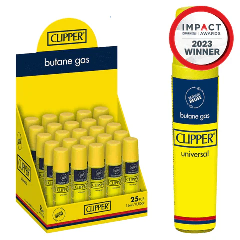 Introducing Clipper's 7x refined Butane Gas. This 16ml can is the perfect portable solution. It has pure and reliable fuel with a superior refinement process ensuring a clean burn. Refill all your Clipper Reusable lighters with Butane in one easy step with the least polluting gas that guarantees the stability of the flame!