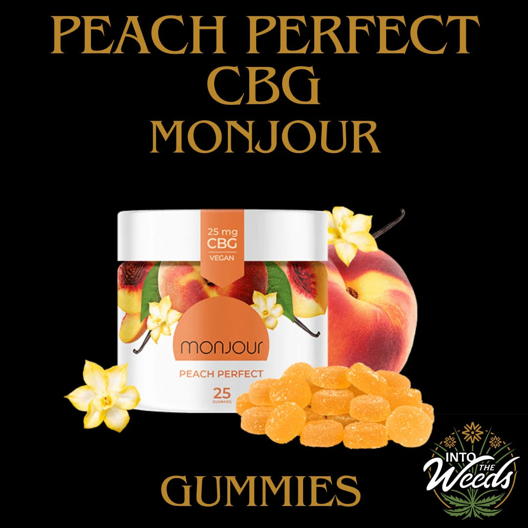 The most sough after minor cannabinoid on the market, now in a large format. Meet Peach Perfect CBG soft chews from monjour. These delicious sugar coated soft chews feature a not-to-be-missed peach vanilla flavour profile and 20 mg of CBG per soft chew.