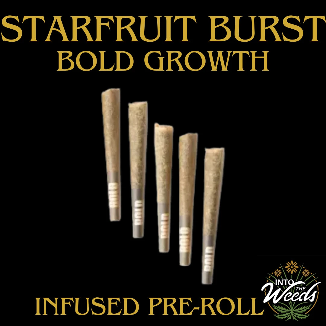 Sativa dominant whole craft flower infused with diamonds and Starfruit Burst. These infused pre-rolls are high potency with the exotic and sweet taste of starfruit.