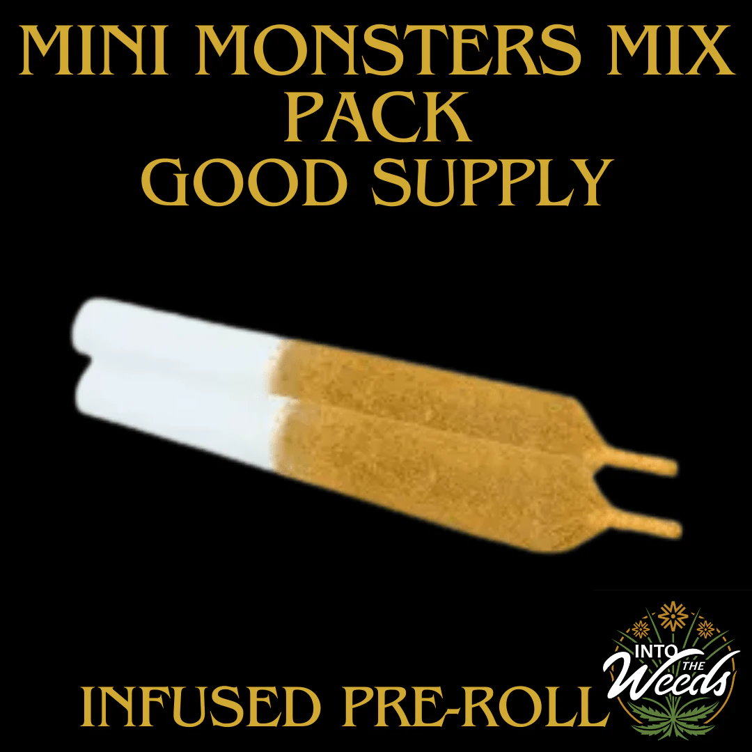 Double the beasts, half the size introducing Mini Monsters Infused Pre-Rolls Mix Pack. We took the same terrifyingly potent Monsters Infused Pre-Rolls and shrunk them into two mini but mighty versions so you can spread out the mayhem or take on the Monsters at your own pace. This two pack delivers a monstrous 1,000mg of THC into two 42% THC 1.19g infused pre-rolls, making them smaller but seriously savage. The Mini Monsters mashup includes Golden Guy. A sativa powerhouse forged from Jean Guy milled flower and Pineapple Express BHO. Monkey Walker. An indica beast, blending Monkey Butter milled flower and Starwalker Kush BHO. Each Mini Monster is made with strain specific, hang dried milled flower, before being infused with strain specific BHO and expertly rolled, coated in extract and kief. Mini or not, these beasts are not for the faint of heart. Two ferocious strain mash ups, one monstrous mix pack. Are you ready to tame the Mini Monsters.