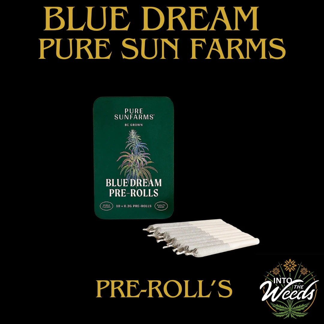 All-natural 10-pack of 0.3g pre-rolls made with BC-grown whole flower. No trim. No shake. A West Coast cultivar,?Blue Dream?is a fruity cross of Blueberry and Haze, grown in the modern Pure Sunfarms greenhouse in the Fraser Valley. It presents flavours of blueberry, lemon, and forest pine. Conveniently portioned and presented in a reusable tin. Featuring natural paper, each joint is finished with a twisted end, preventing spillage, and acting as a convenient wick.