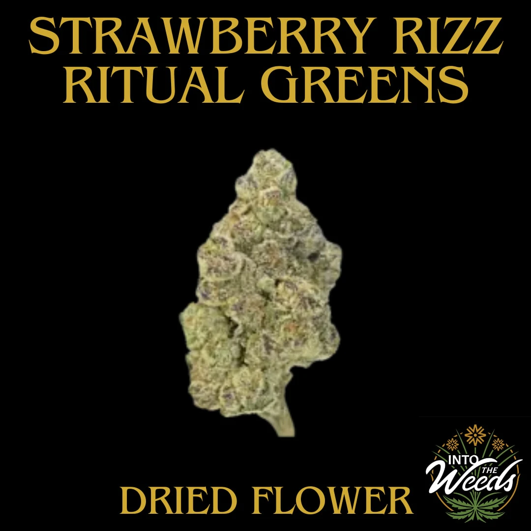 Ritual Green's Strawberry Rizz is sure to impress! These stunning buds feature rich burgundy and purple hues, with vibrant green and purple flowers, and delicate orange hairs. Developed by Compound Genetics through the cross of Red Pop and Jokerz #13. Strawberry Rizz delivers sweet notes of strawberry candy, creamy undertones, and earthy richness.
