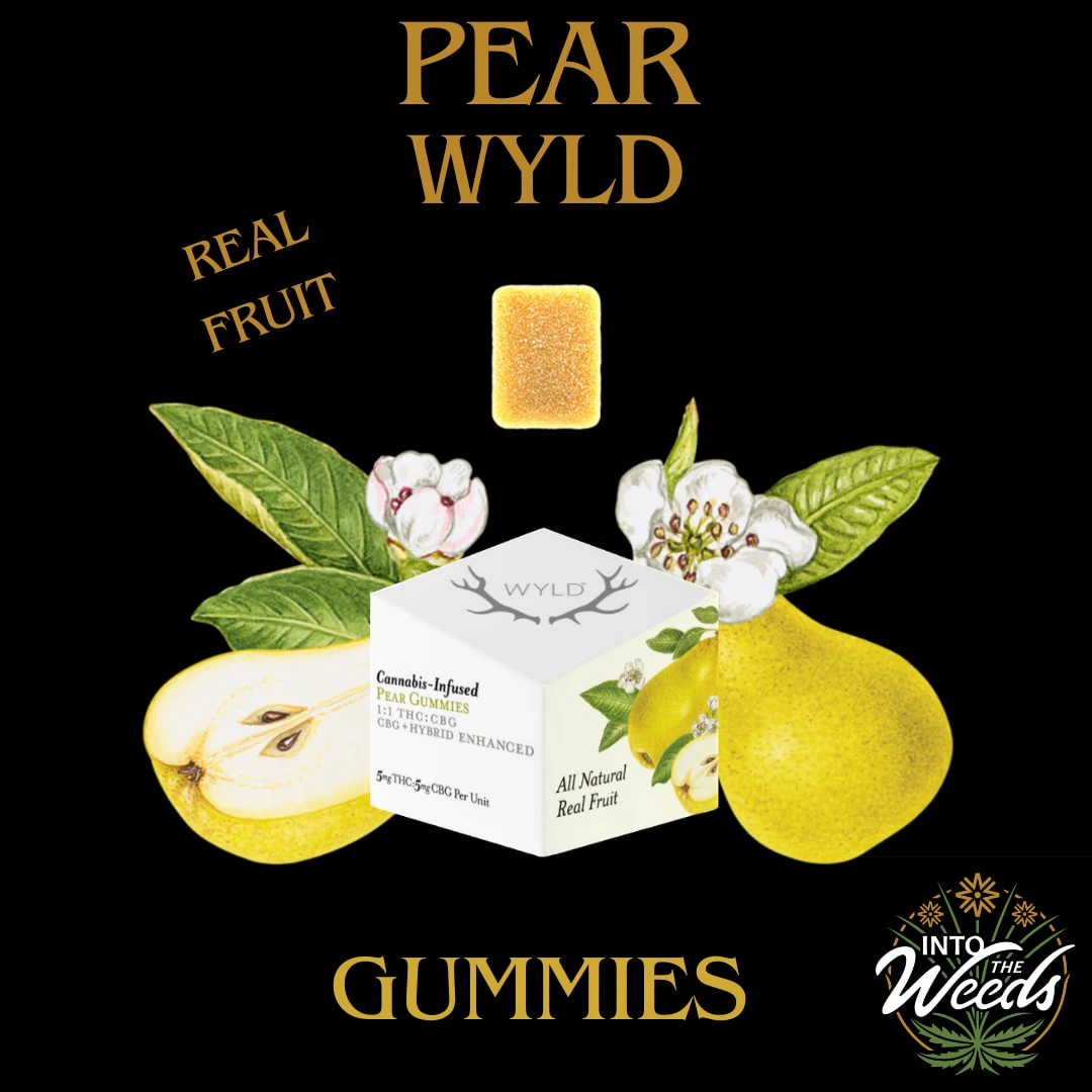 Wyld Pear Hybrid Enhanced THC:CBG gummies are a 1:1 product featuring a balanced dose of CBG. Made sustainably made using real fruit, botanical terpenes and natural flavours. Wyld gummies use sunflower lecithin to improve biovailability and onset time and are made to be thermostable up to 60°C, with a firm texture that doesn’t stick to your teeth. Each Wyld Pear Hybrid Enhanced gummy contains 5mg THC and 5mg CBG combined with the terpenes limonene, linalool, alpha-pinene, and beta-pinene for a balanced, euphoric experience.