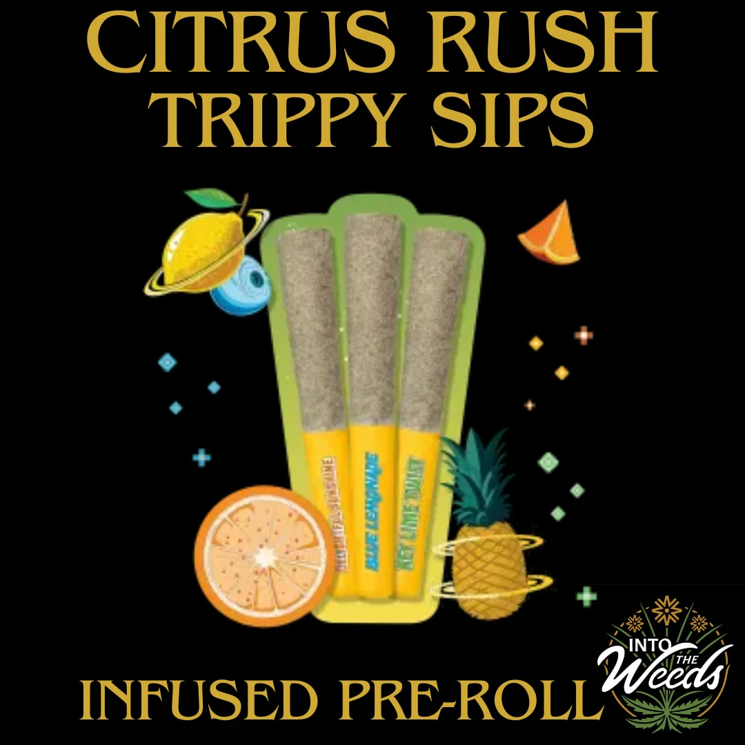 Pucker up for a sweet and sour trip with the Trippy Sips Citrus Rush Variety Pack. Delightful Sunshine, Blueberry Lemonade, and Key Lime Twist pre-rolls are made with whole flower, infused with a liquid diamonds blend, and coated in kief for a potent punch on every puff.