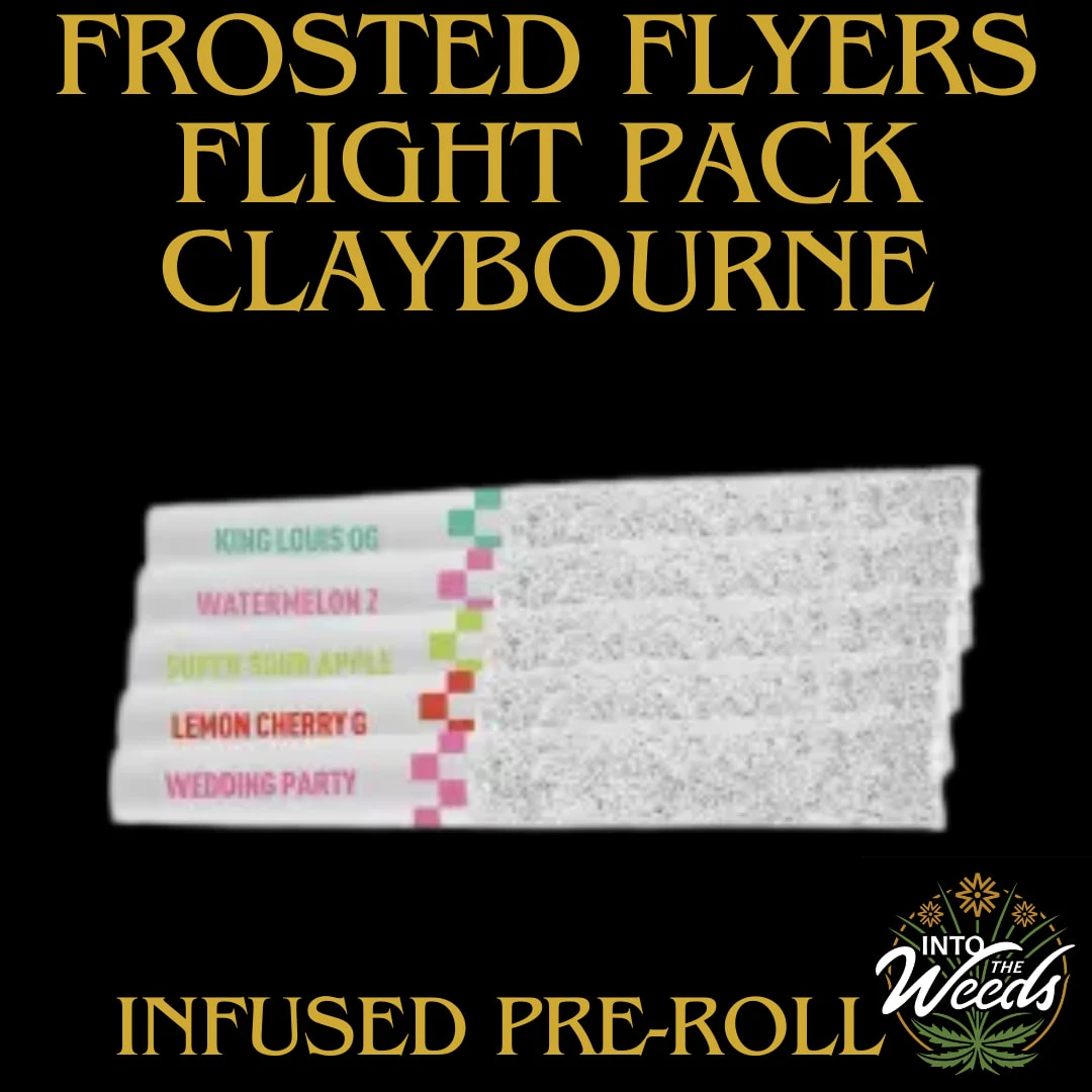 Claybourne Frosted Flyers Infused Variety Pack features 5 strains in one pack. These 5x0.5g pre-rolls are THCa diamond frosted, terpene enhanced and infused with liquid diamonds. Looking for bold flavour and a potent experience? Look no further than Claybourne Frosted Flyers.