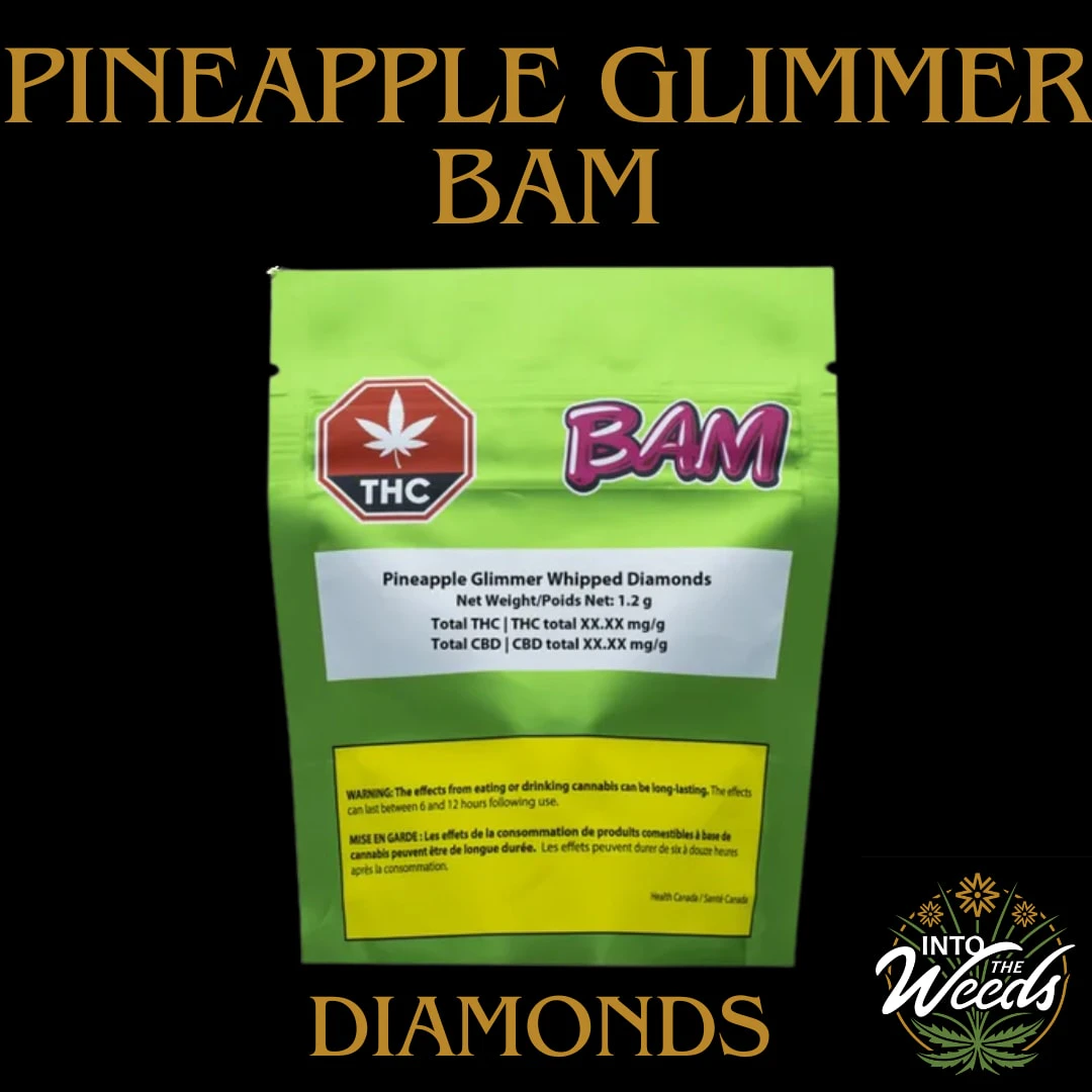 Pineapple Glimmer Whipped Diamonds are BAM's newest innovation. THCA Diamonds whipped with cannabis derived terp sauce with a dash of botanical terps to create this new texture. Packed with flavour and potency, diamond whips are here to wow!