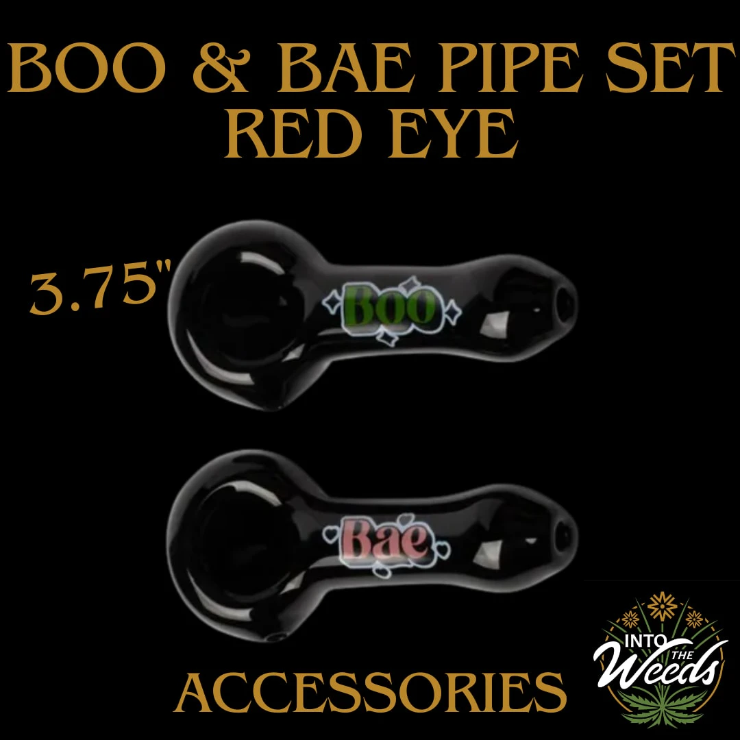 The Boo & Bae Hand Pipes from Red Eye Glass® are perfect for the stoner couple in your life. Each of these two packs comes with a collectible tin and two pipes made of 100% borosilicate glass.