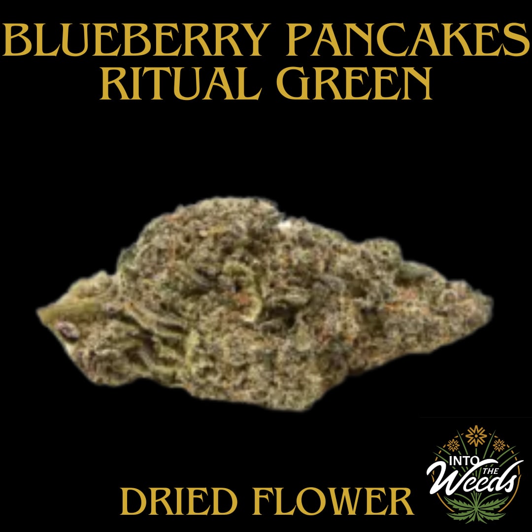 Craft Grown Hang Dried Hand Finished Never Irradiated Ritual Greens Blueberry Pancakes is East Coast Craft at its most indulgent - pungent, colorful, and irresistible. This indica dominant cultivar, testing between 27-33% THC shows off light green buds with purple sugar leaves, blanketed in milky trichomes. Its unique blend of dominant terpenes, Limonene, Myrcene and Germacrene B contribute to a decadent blend of gas, fermented grapes, and citrus. The result is a flavorful experience that melts into deep relaxation and warm euphoria. Make sure Blueberry Pancakes is included in your next Ritual.